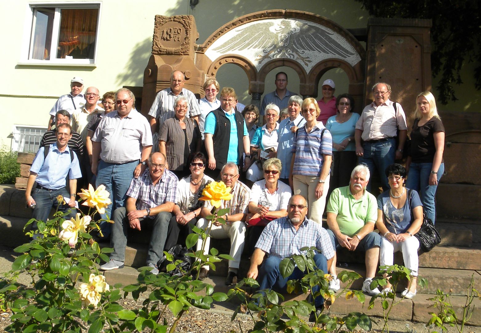 Dort angekommen, teilten sich die Mitreisenden in zwei Gruppen auf und bestiegen die mit jeweils zwei Pferden bespannten Planwagen. Anschließend ging es mit den Planwagen in gemütlicher und fröhlicher Fahrt bei Wein und Wasser den Mönchberg entlang des gleichnamigen Weingutes hinauf und bei herrlichem Sonnenschein auch wieder hinab sowie durch den Ort hindurch bis zum Ausgangspunkt beim Bahnhof Mayschoß.Danach spazierte man die wenigen Meter zu Fuß zur Winzergenossenschaft Mayschoß-Altenahr eG, wo die Ausflugsteilnehmer zunächst von Frau Krätz, einer Winzerin, in Empfang genommen und durch die Weinkeller geführt wurden. Anschließend begab man sich in einen weiteren großen Kellerraum, der bereits mit Stühlen und einer gedeckten Tafel versehen war. Dort probierte man sechs Sorten heimischen Wein, zu denen Frau Krätz jeweils einleitende Erläuterungen gab. Dazu verkosteten die Ausflügler bei bester Laune einen reichhaltigen „Winzerteller“. Nach der Weinprobe bestand Gelegenheit, den schönen Ort Mayschoß/Ahr noch etwas zu Fuß zu erkunden, bevor der Bus die Reisegruppe zurück zur Unterkunft im Hotel Ewerts in Insul/Ahr brachte. Hier wurde man am Abend wieder durch ein hervorragendes drei-Gänge-Menü verwöhnt und ließ anschließend den Tag in vergnüglicher Runde ausklingen.Nach geruhsamer Nacht und reichhaltigem Frühstück hieß es am dritten Ausflugstag, bereits wieder Abschied nehmen vom Hotel Ewerts und Insul/Ahr, was angesichts der familiären Atmosphäre nicht leicht fiel. Mit dem Bus fuhr man bei noch kühler und nebliger Witterung durch das Ahrtal bis nach Ahrweiler, das unmittelbar an Bad-Neuenahr grenzt. Nachdem der Bus den nahe des historischen Zentrums gelegenen Parkplatz angesteuert hatte, wurde die Ahrweiler Altstadt mit den noch erhaltenen mächtigen Stadttoren, Stadtmauer und romantischen Gassen in Kleingruppen bei zunehmend sonnigem Wetter auf eigene Faust erkundet.