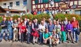Nach einem steilen Abstieg in die Schmerachklinge musste der Bach über eine Furt überquert werden, wobei sich einige Wanderer nasse Schuhe holten. Im Pfarr– und Bauerndorf Reinsberg erzählen eine Reihe prächtiger Bauernhäuser noch heute vom damaligen Wohlstand. Die Geschichte wird auch hier auf einer Schautafel beschrieben. Bis nach Cröffelbach boten sich vielfältige Ausblicke auf die Bühler. Nach dem fürstlichen Mittagsmahl im Steigengasthaus, hier wurden früher Pferdewechsel– und Vorspanndienste geleistet, ging es entlang der Bühler nach Geislingen. Beim Aufstieg zur ehemaligen Burg Bielriet gewann man rasch an Höhe. Die um das Jahr