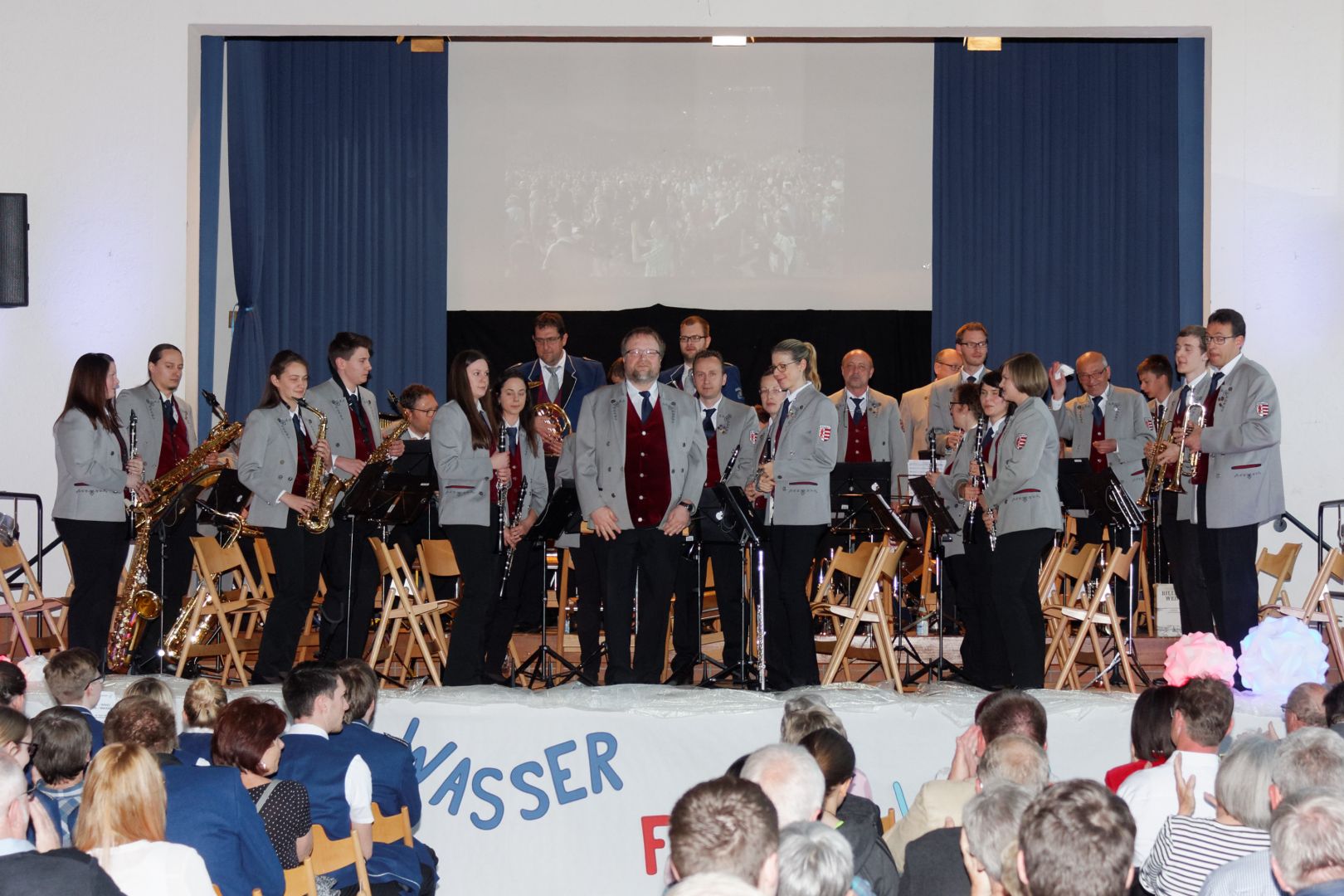 & Fire schafften die Musiker es dann beinahe alle Themen des Konzerts in ein finales Stück zu packen und dem Publikum noch eine ganz andere Facette der Blasmusik zu präsentieren. Bei diesem Stück für Big Bands konnte das junge Orchester aus Straßdorf zeigen das es sich auch im „rhythm and blues“ wohlfühlt und so richtig funky ist. Nach einer kurzen Pause durften dann die Gäste aus Waldstetten die Bühne übernehmen. Manfred Fischer und seine Musiker übernahmen das Motto der Gastgeber und präsentierten beispielsweise „How to train your dragon“, die Titelmusik des Animationsfilms „Drachenzähmen leicht gemacht“. Erzählt wird die Geschichte von einem Wickingerjungen, der einen Drachen zähmt. Ebenfalls zum Thema Luft und Berge spielten die Waldstetter den Kärntner Liedermarsch. Nach ihrem letzten Stück Halleluja von Leonard Cohen präsentierten die Musiker dann noch ein spezielles Stück zum Thema Wasser, Salemonia von Kurt Gäble, ein Konzertmarsch des Schloßseefests in Salem. Insgesamt war es ein sehr gelungenes und aufwendig arrangiertes Konzert, bei dem beide Musikvereine vom begeisterten Publikum mit ausgiebigem Applaus bedacht wurden.