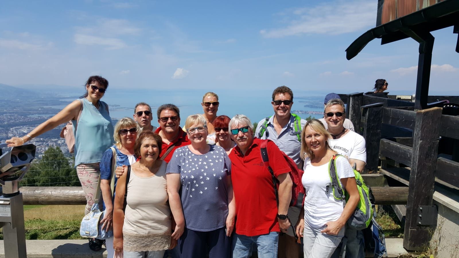 Per Bus ging es weiter Richtung Bregenz, um anschließend mit der Gondel auf den „Pfänder“ zu fahren. Auf dem Weg zur Bergstation des 1064 Meter hohen „Pfänder“ hatte man bereits einen atemberaubenden Ausblick auf die Stadt Bregenz, den Bodensee und die umliegenden Bergformationen. Zwei Stunden Mittagspause auf dem Gipfel waren zur freien Verfügung. Diese nutzten die Teilnehmer individuell mit kleinen Wanderungen, Mittagessen oder auch einfach nur zum Entspannen auf der sonnigen Alpwiese mit den Nachwehen der Schnapsprobe.