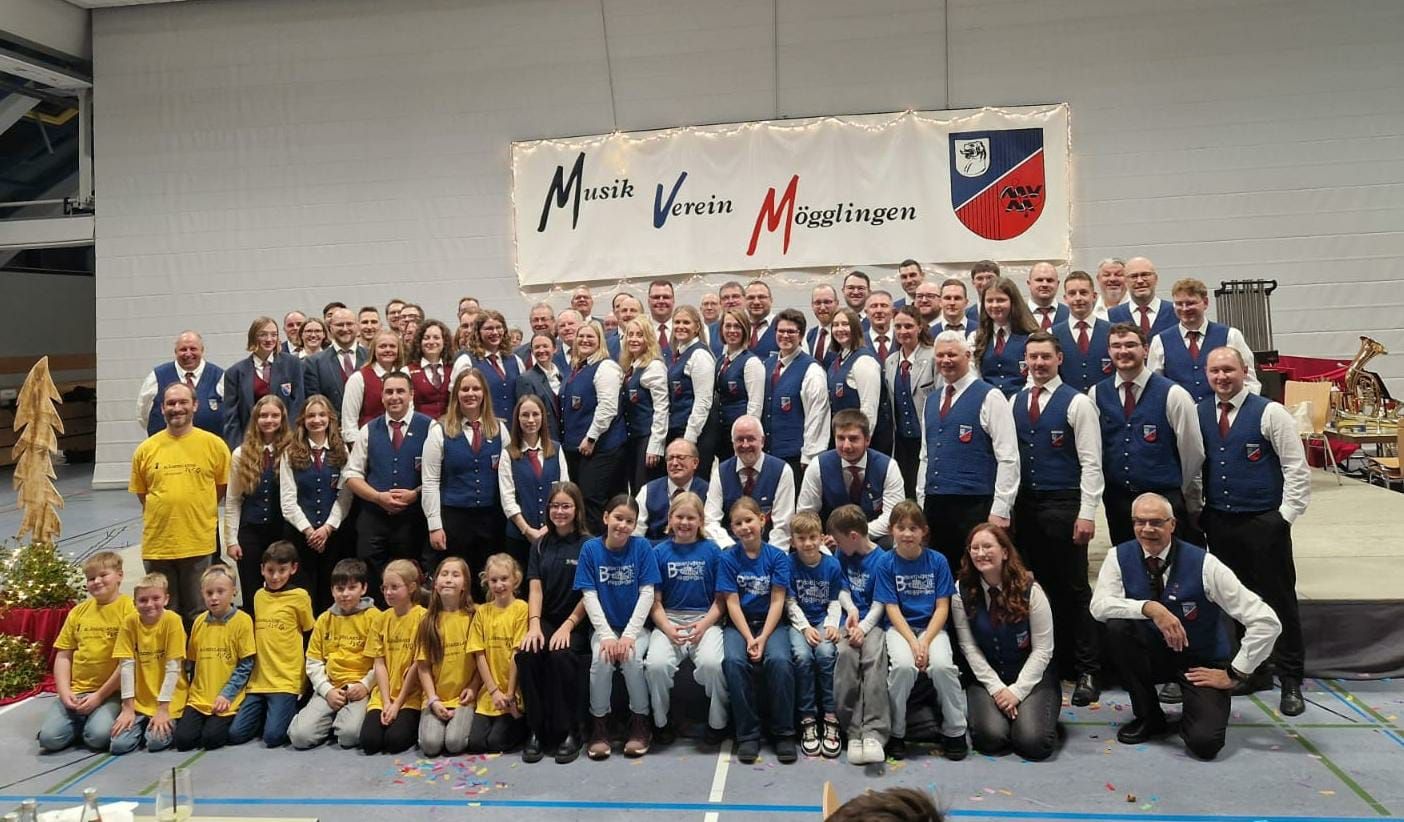 4) unter der Leitung von Christian Böttcher an der Reihe. Sie überzeugten mit einer abwechslungsreichen Auswahl an Stücken. Das traditionelle amerikanische Volkslied „Oh Susanna“, das rockige „Hard Rock Blues“, sowie das festliche „Freu dich, Erd und Sternenzeit“ und “ Morgen kommt der Weihnachtsmann“, sorgten für eine ausgelassene und fröhliche Stimmung im Publikum. Gastauftritt GMV Iggingen: Ein Hauch von Professionalität Ein besonderes Highlight des Konzerts war der Auftritt des Gastorchesters GMV Iggingen unter der Leitung von Manuel José Gonzáles Lópes. Mit einer Auswahl an eindrucksvollen Stücken, darunter „Alcazar Llano“, „Fate of the Gods“, „Archivisten Polka“, „Mi Amargura“, „Coldplay in Symphony“ und einer faszinierenden Interpretation der Ansagerinnen Ute Kaiser und Denise Behringer setzte das Gastorchester neue musikalische Maßstäbe. Die Igginger Musiker glänzten durch Präzision und Ausdruckskraft und sorgten für Begeisterung im Publikum. Höhepunkt: Der Musikverein Mögglingen Der Höhepunkt des Abends war schließlich der Auftritt des Musikvereins Mögglingen selbst, unter der Leitung von Dirigentin Christine Kraus. Das Orchester präsentierte ein abwechslungsreiches Programm, das sowohl klassische als auch moderne Werke beinhaltete. Zu Beginn des Konzerts wurde dere majestätische „To my Country“ von dem niederländischen Komponisten Bernard Zweers– ein episches Stück, das an Heimatliebe erinnern soll, aufgeführt. Der Kontrast dazu war das düstere und geheimnisvolle „Silva Nigra“, das die Zuhörer in eine geheimnisvolle Schwarzwaldwelt entführte.Mit dem beeindruckenden Medley „Frank Sinatra“, das sowohl Klassiker des unvergesslichen Sängers als auch die elegante Atmosphäre seiner Musik aufgriff, wurde der Vortrag fortgesetzt.Der musikalische Bogen spannte sich weiter mit den mitreißenden „Hans Zimmer Movie Milestones“ folgte ein weiteres Highlight des Abends, das die Zuschauer in die Welt des berühmten Filmkomponisten entführte und die Bandbreite seiner filmmusikalischen Meisterwerke zeigte. Als krönender Abschluss erklang der „Marsch der Titanen“, ein festliches Stück, das den Abend auf triumphale Weise beendete. Ein weiteres Highlight war die Ansage von Michael Hegele, dem Weltrekord-Speaker, ausgezeichnet mit dem Excellence Award. Mit seinem Charme und seiner Eloquenz sorgte Hegele für einen humorvollen und spannenden Moment zwischen den Musikstücken und rundete das Gesamterlebnis ab.Der musikalische Bogen spannte sich weiter mit den mitreißenden „Hans Zimmer Movie Milestones“ folgte ein weiteres Highlight des Abends, das die Zuschauer in die Welt des berühmten Filmkomponisten entführte und die Bandbreite seiner filmmusikalischen Meisterwerke zeigte. Als krönender Abschluss erklang der „Marsch der Titanen“, ein festliches Stück, das den Abend auf triumphale Weise abrundete. Ein weiteres Highlight des Abends war die Ansage von Michael Hegele, dem Weltrekord-Speaker, ausgezeichnet mit dem Excellence Award. Mit seinem Charme und seiner Eloquenz sorgte Hegele für einen humorvollen und spannenden Moment zwischen den Musikstücken und rundete das Gesamterlebnis ab. Nicht nur die Musik sorgte für Begeisterung, auch die Tombola des Abends war ein voller Erfolg. Zahlreiche Preise wurden verlost, was für zusätzliche Spannung und Unterhaltung sorgte. Die Verlosung trug zur festlichen Stimmung bei und bot den Anwesenden einen weiteren Grund zum Jubeln. Ein herzliches Dankeschön von der Vorstandschaft an ALLE Akteure, Helfer und Besucher! Was wären wir nur ohne Euch! Vielen Dank für diesen tollen Abend!