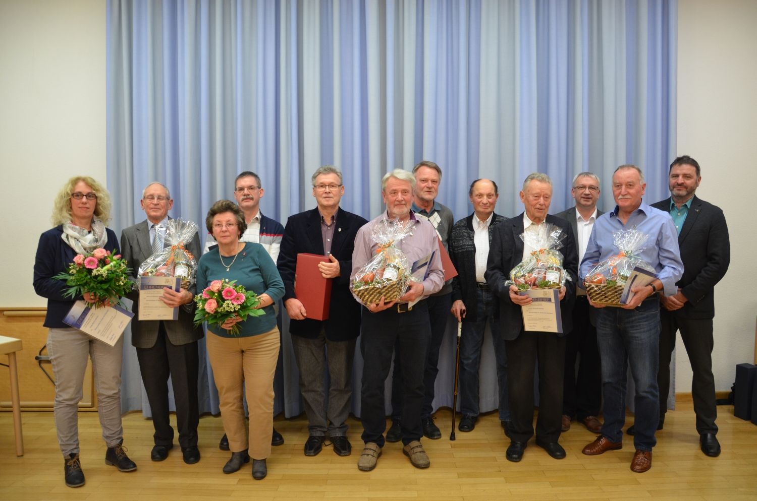 Die Ehrungen führte der Vorsitzende des Blasmusikverbands Ostalb, Hubert Rettenmaier durch: Für 10 Jahre fördernde Mitgliedschaft mit der Ehrennadel in Bronze:Gabriele Bischof, Martin Bischof, Sonja Elser, Wilfried Elser, Klaus Steiner; Für 40 Jahre fördernde Mitgliedschaft mit der Ehrennadel in Gold mit Diamant: Ulrich Lüthe – Für 60 Jahre fördernde Mitgliedschaft mit der Ehrennadel in Gold mit Diamant: Dieter Jordan – Für 40 Jahre aktive Tätigkeit mit der Ehrennadel in Gold mit Diamant und Ehrenbrief: Karin Lamerz – Für 60 Jahre aktive Tätigkeit mit der Ehrennadel in Gold mit Diamant und Ehrenbrief: Gerhard Knödler, Eberhard Munz – Für 70 Jahre aktive Tätigkeit mit der Ehrennadel in Gold mit Diamant und Ehrenbrief: Rudolf Drexler, Friedrich Kehe.Im Anschluss an die Ehrungen wurde Helmut Kreeb für seine besonderen Verdienste um den Verein von M. Lamerz zum Ehrenmitglied ernannt. Vorsitzender Lamerz fand für alle Geehrten persönliche Worte des Danks und überreichte ihnen ein Präsent.